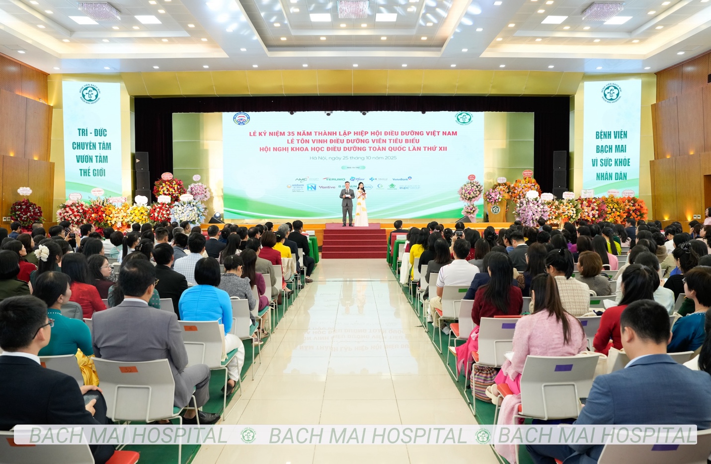 Sáng 25/10/2025, Hiệp hội Điều dưỡng Việt Nam  phối hợp cùng tại Bệnh viện Bạch Mai, long trọng tổ chức Lễ kỷ niệm 35 năm thành lập (1990–2025), Lễ tôn vinh Điều dưỡng viên tiêu biểu toàn quốc và Hội nghị Khoa học Điều dưỡng toàn quốc lần thứ XII.