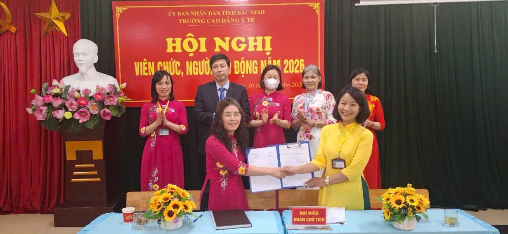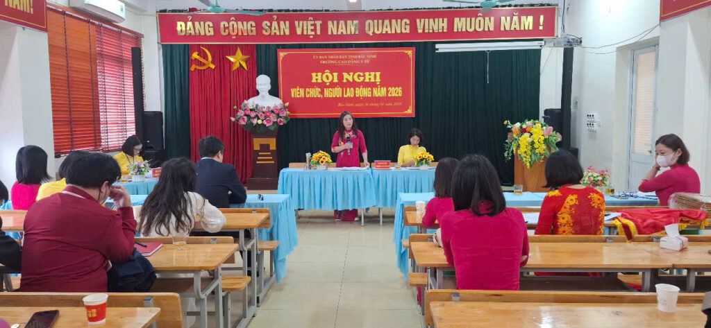 Hội nghị Viên chức, Người lao động năm 2026 của Trường Cao đẳng Y tế Bắc Ninh đã diễn ra thành công tốt đẹp, thể hiện sự thống nhất cao về ý chí và hành động của tập thể Nhà trường, tạo khí thế thi đua sôi nổi, niềm tin và quyết tâm của toàn thể cán bộ, giảng viên, viên chức và người lao động, hướng tới mục tiêu xây dựng Nhà trường ngày càng phát triển, khẳng định vị thế là cơ sở đào tạo y tế uy tín của tỉnh và khu vực.góp phần xây dựng Trường Cao đẳng Y tế Bắc Ninh phát triển ổn định, bền vững, đáp ứng yêu cầu đào tạo nguồn nhân lực y tế trong tình hình mới.